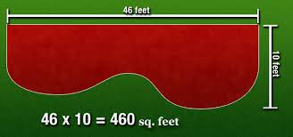 Example: In the measurement below if you divide the 460 square feet by 120 you will need 3.84 yards. You then round it up or down to the nearest 1/2 yard. In this case that would be 4 yards.